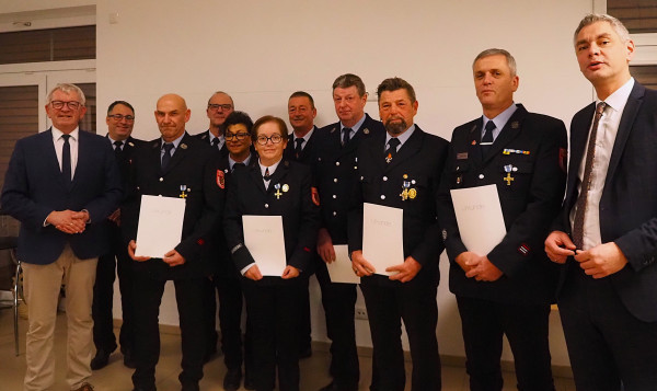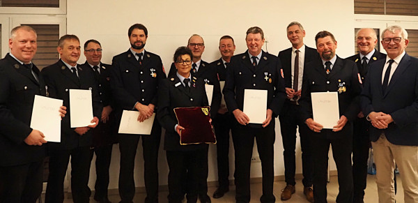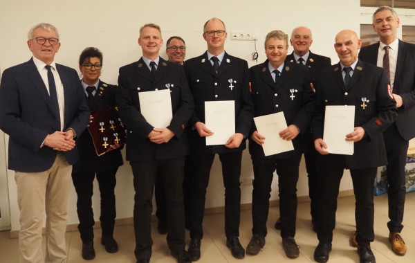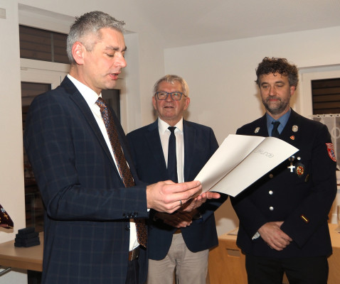 Kreisbrandinspektor Friedrich Riemer dankte den verdienten Feuerwehrkräften sowie deren Familien für ihre immerwährende Unterstützung bei Übungen und Einsätzen. Die Feuerwehren bieten auch in unruhigen Zeiten eine stabile Basis in Katastrophenfällen. Er dankte der Gemeinde für die Unterstützung sowie die Bereitstellung einer modernen Ausstattung.
