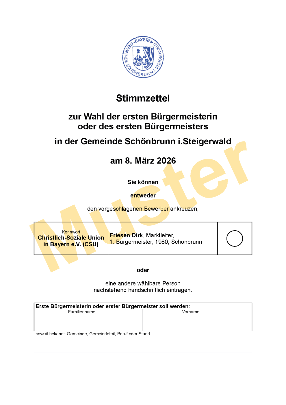 Wahlauswertung der Gemeinde Schönbrunn i. Steigerwald