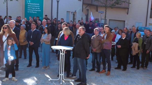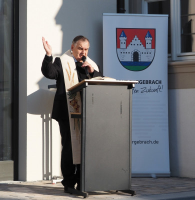 Vor dem traditionellen Einschießen der Kerwa auf dem Goldberg feierte der Markt Burgebrach bei strahlendem Sonnenschein die erfolgreiche Fertigstellung der umfassenden Ortskernsanierung im Bereich der Hauptstraße und westlichen Marktstraße. Am neu gestalteten Brunnenplatz westlich des Rathauses fand die offizielle Übergabe statt.