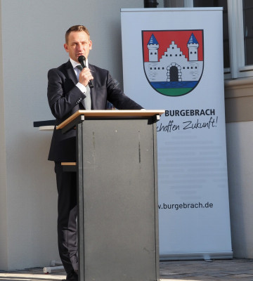 Erster Bürgermeister Johannes Maciejonczyk zeigte sich stolz auf die neue Gestaltung des Historischen Ortskerns: „Wir haben hier nicht nur Straßen und Plätze neu gemacht, sondern in die Zukunft Burgebrachs investiert.“ Allein der zweite Bauabschnitt kostete rund 3,5 Millionen Euro – für Straßenbau, Beleuchtung, Verlegung des Brunnens, Möblierung und Begrünung. Auch die Infrastruktur wurde auf den neuesten Stand der Technik gebracht. Der Wasserleitungsbau durch die Auracher Gruppe mit Kosten in Höhe von 384.000 €, der Kanalbau durch die VG Burgebrach mit 192.000 € und der Glasfaserausbau durch den Markt Burgebrach mit 194.000 € bieten für die Zukunft wieder eine stabile Versorgung. Die weiteren Maßnahmen der vergangenen Jahre mit dem Bauabschnitt I – Burggraben und Teilbereich der Hauptstraße verursachte Ausgaben von 920.000 €, die Maßnahme Dorfanger 439.000 € und die Maßnahme Würzburger Straße 1,5 Mio. €.
