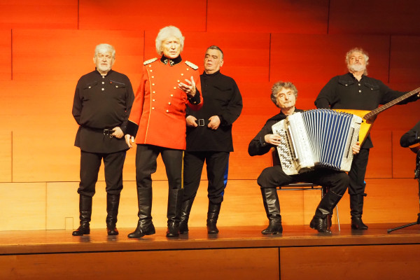Auch mit seinen 81 Jahren präsentierte Orloff seine Songs ausdrucksstark und stimmgewaltig. „Immer wenn ich Josy seh“ – ein Titel, der vielen Gästen noch aus den Hitparaden bekannt war, animierte das Publikum zum Mitsingen. Weitere bekannte Titel waren „Ein Mädchen für immer“ und der berührende Song „Du“, den er eigens für Peter Maffay geschrieben hat. Besonders eindrucksvoll waren auch die instrumentalen Darbietungen von Ilya auf der Bajan, Irina auf der Domra und Slava auf der Kontrabass-Balalaika.