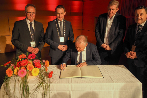 Kein Abschied, aber ein Dank von Herzen: Beim Neujahrsempfang ehrten die Bürgermeister Peter Pfohlmann und Peter Ludwig den ab Mai ausscheidenden Ersten Bürgermeister Johannes Maciejonczyk mit bewegenden Worten.
