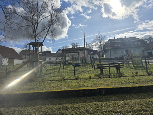 Auf Wunsch der Dorfgemeinschaft wird auch der Spielplatz neugestaltet. Unter anderem ist eine überdachte Sitzmöglichkeit geplant.