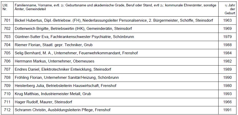 folgende Bewerberinnen und Bewerber zugelassen: