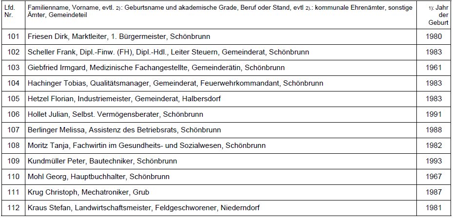 Wahlvorschlag Nr. 06 Kennwort Bürgerblock